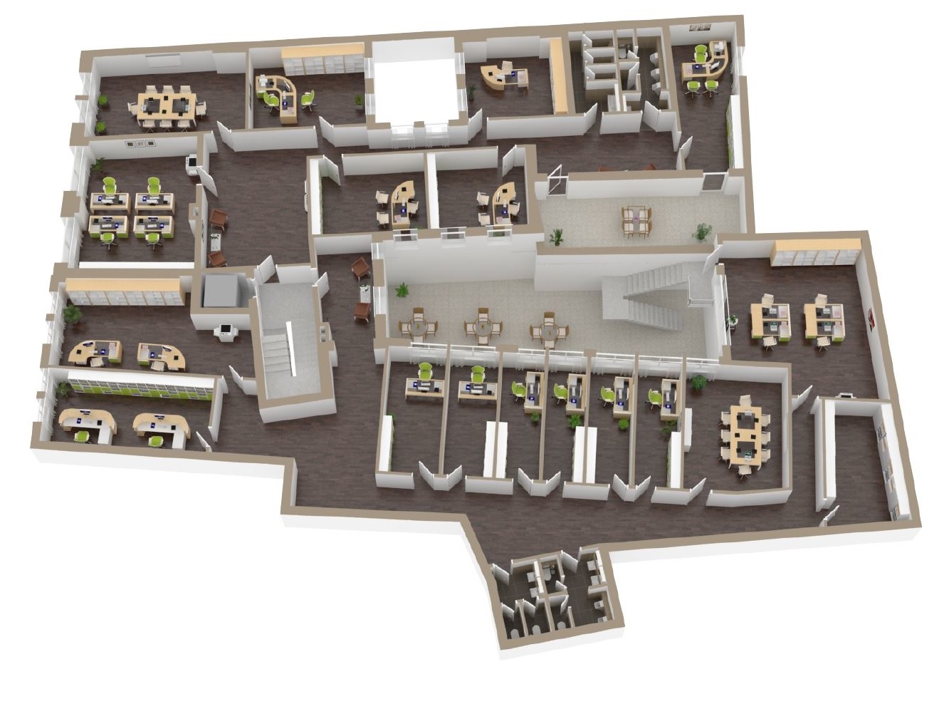 Das Objekt wird vollständig entkernt und das Raumkonzept neu festgelegt. Durch die Stützenkonstruktionen lässt sich eine vielseitige Raumaufteilung realisieren. Der rechte Gebäudeteil im Hinterhof wird abgerissen und bis zum 3. OG neu aufgebaut. Die Qualität des Ausbaus darf der Mieter mitbestimmen. Je nach Bedarf kann sogar im Erdgeschoss ein Conciergebereich eingerichtet werden. Aktuell ist im Erdgeschoss ein Behinderten- WC für das gesamte Haus geplant. Dies spart Platz in den einzelnen Mietflächen, ist aber auch änderbar.